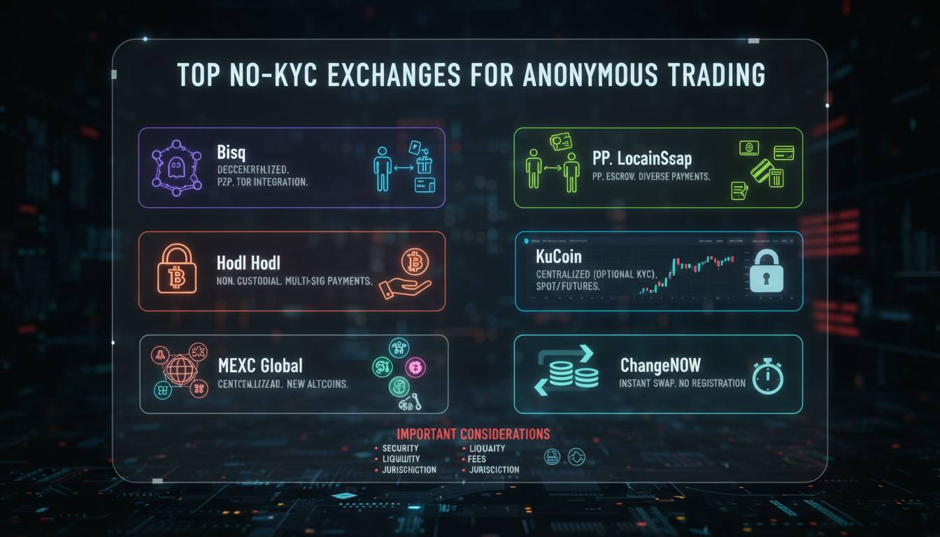 Anonymous cryptocurrency trading has grown significantly as traders increasingly prioritize financial privacy. While most exchanges now require comprehensive identity verification, several platforms still offer limited or no KYC (Know Your Customer) requirements, allowing users to trade with greater autonomy. These platforms appeal to privacy advocates, quick-trade seekers, and those in regions where traditional banking services remain inaccessible.