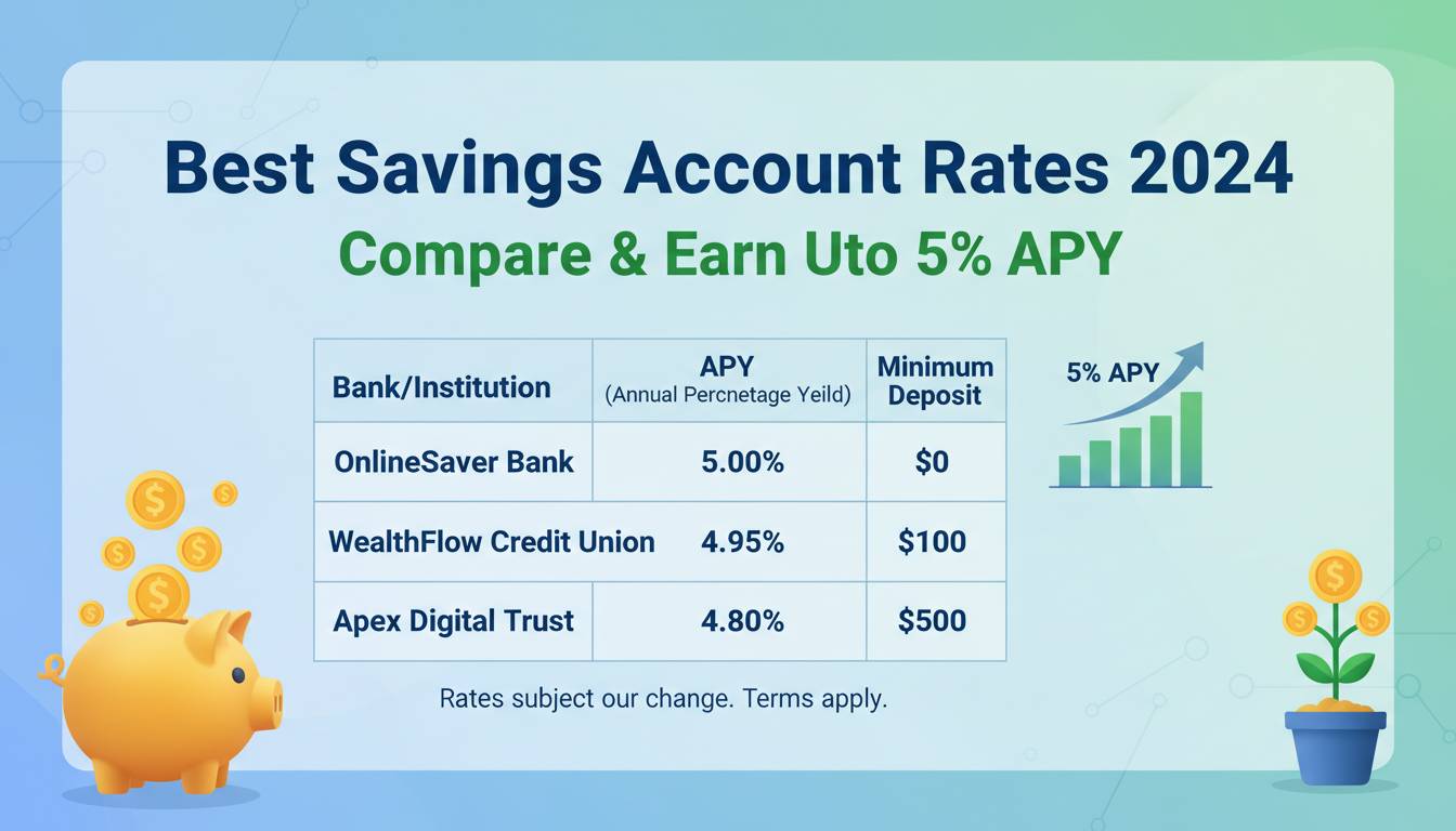 Finding the best savings account rates in 2024 can feel like searching for a needle in a haystack. With traditional banks offering a meager 0.01% APY while online high-yield savings accounts deliver 4.5% to 5.00% APY, the difference in your earnings is substantial. Over a year, $10,000 in a high-yield account could earn you $450-$500 in interest compared to just $1-$5 at a traditional bank. This guide breaks down everything you need to know about maximizing your savings in the current rate environment.
